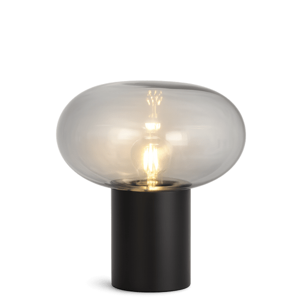 Alba is een moderne tafellamp met een stijlvol design. De zwarte metalen voet zorgt voor een stabiele en elegante uitstraling,Lees meerAlba is een moderne tafellamp met een stijlvol design. De zwarte metalen voet zorgt voor een stabiele en elegante uitstraling, terwijl de kap van rookglas een zacht en sfeervol licht creëert. De transparante tint zorgt ervoor dat de lichtbron onderdeel wordt van het design en draagt bij aan het unieke karakter van de lamp. Perfect als decoratieve verlichting op een bijzettafel, bureau of in een vensterbank. Wordt geleverd met een 1,8 m lange zwarte textielkabel, aan/uit-schakelaar en stekker. Lichtbron niet inbegrepen.