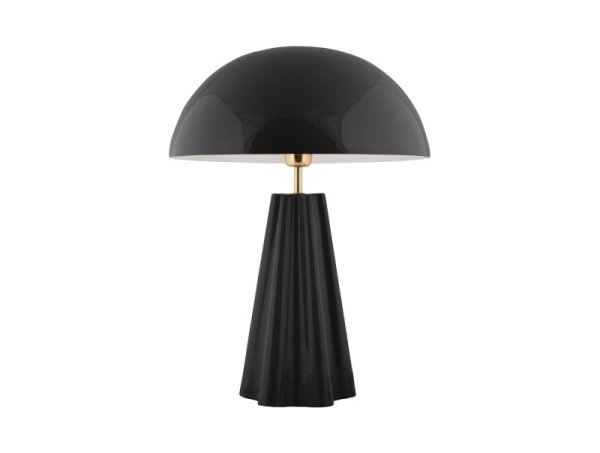 Amplio is een grotere en opvallendere tafellamp die functionaliteit met stijl combineert. De lamp is gemaakt van metaal met eenLees meerAmplio is een grotere en opvallendere tafellamp die functionaliteit met stijl combineert. De lamp is gemaakt van metaal met een glanzend zwarte afwerking en elegante messing details die een verfijnde uitstraling geven. De geribbelde voet in combinatie met de ronde kap zorgt voor een evenwichtig en modern design. De lamp verspreidt een aangenaam licht en is zowel geschikt als lichtpunt in het raam als decoratief pronkstuk in de woonkamer. Wordt geleverd met een 2 meter lange zwarte textielkabel, aan/uit-schakelaar en stekker. Lichtbron niet inbegrepen.