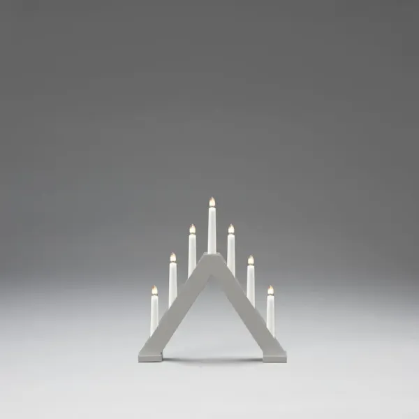 Creëer een stijlvolle en moderne kerstsfeer met deze elegante adventkandelaar in matgrijs gelakt hout. De klassieke piramidevorm wordt gecombineerd met een minimalistisch design, waardoor het een perfect interieurdetail is in zowel traditionele als moderne woningen. De zeven kaarsen verspreiden een warme en sfeervolle gloed - een tijdloze favoriet die de Adventstijd opfleurt! Wordt geleverd met 1,7 m wit snoer, aan/uit-schakelaar en stekker. Inclusief 7 vervangbare E10-lampen (34V).
