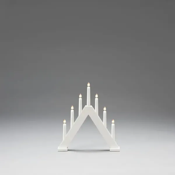 Creëer een stijlvolle en moderne kerstsfeer met deze elegante adventkandelaar van mat wit gelakt hout. De klassieke piramidevorm wordt gecombineerd met een minimalistisch design, waardoor het een perfect interieurdetail is in zowel traditionele als moderne woningen. De zeven kaarsen verspreiden een warme en sfeervolle gloed - een tijdloze favoriet die de Adventstijd opfleurt! Wordt geleverd met 1,7 m wit snoer, aan/uit-schakelaar en stekker. Inclusief 7 vervangbare E10-lampen (34V).