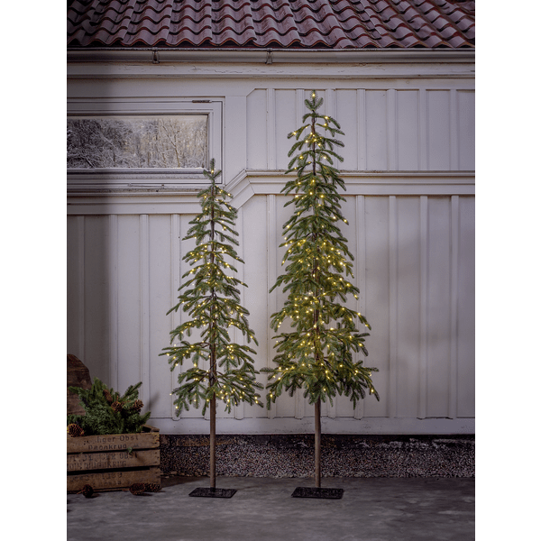 Grantorp is een spar met een levensechte uitstraling, ongeveer 180 cm hoog en 40 cm breed, gemaakt van PE. Met 240 warmwitte lichtpunten, waarvan sommige lichtjes twinkelen, zorgt de lamp zowel binnen als buiten voor een prachtig licht. De basis is vierkant en er worden 4 grondpennen bijgeleverd waarmee u de boom kunt verankeren als u hem buiten gebruikt. Wordt geleverd met 5m groene aansluitkabel en transformator.