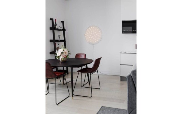De Hayden wandlamp heeft een diameter van 70 cm en een diepte van 5 cm, waardoor hij behoorlijk wat ruimte inneemt. de muur. Met de vele kleine LED-lampjes wordt het licht zowel tastbaar als interessant dankzij het materiaal en de vorm van de armatuur. De lamp is dimbaar met een dimmer. het snoer. Dankzij de snoerlengte van 200 cm van een gen kunt u de lamp eenvoudig wat verder van het stopcontact bevestigen.