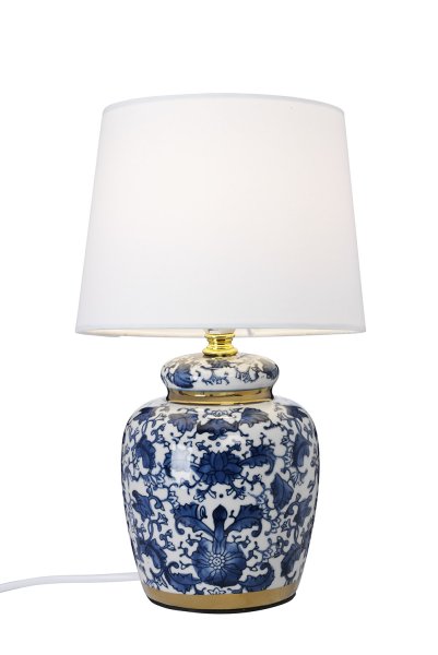 Deze klassieke tafellamp van keramiek en textiel straalt elegantie en traditie uit. De prachtig gepatroneerde keramische voet geeft een verfijndeLees meerDeze klassieke tafellamp van keramiek en textiel straalt elegantie en traditie uit. De prachtig gepatroneerde keramische voet geeft een verfijnde uitstraling en creëert een tijdloze charme in de kamer. De witte textielen kap verspreidt een zacht en uitnodigend licht, waardoor de lamp perfect is voor een huiselijke sfeer in de woonkamer of op het nachtkastje. Een lamp die past in zowel klassieke als moderne omgevingen. Lichtbron niet inbegrepen.