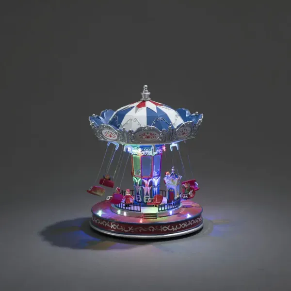 Laat de magie van Kerstmis los met deze mechanische kerstversiering in de vorm van een kleurrijke draaimolen! Met bewegende onderdelen en felle led-lampjes creëert het een feestelijk en nostalgisch gevoel. Ideaal als blikvanger in uw kersthuis. Een vrolijke decoratie voor zowel kinderen als volwassenen! Werkt op 3xAA-batterijen (1,5 V - niet inbegrepen). Inclusief transformator met 1,8 m transparant snoer en stekker. Geïntegreerde LED-verlichting.