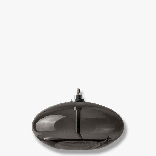 Skapa en sofistikerad och modern atmosfär med den ellipsformade AURA-oljelampan från Mette Ditmer i en stilren, dämpad svart nyans. Dess eleganta design och rökfärgade glas sprider ett mjukt, varmt ljus som ger en lugn och mysig känsla. Perfekt som dekoration på ett dukat bord, en skänk eller en fönsterbräda, där den tillför subtil lyx och harmoni. Den stilrena färgen och formen gör lampan mångsidig och vacker både ensam och tillsammans med andra oljelampor.