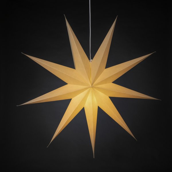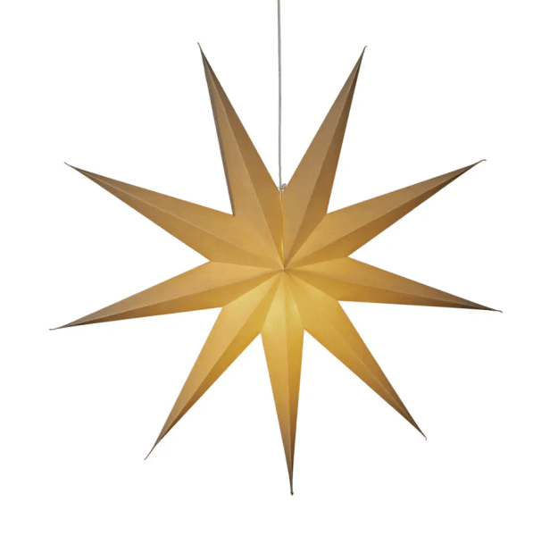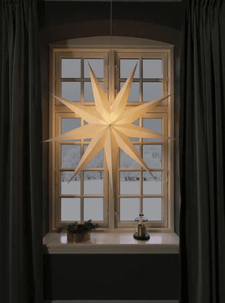 Verlicht de duisternis van december met deze klassieke papieren ster in een grijs/beige tint. Met zijn stijlvolle design en zachte licht verspreidt het een rustige en huiselijke kerstsfeer. Ideaal om in het raam te hangen of tegen een mooie muur – een tijdloze decoratie die elke kamer met haar eenvoudige elegantie verfraait. Wordt geleverd met 5 m wit snoer, aan/uit-schakelaar en stekker. Lichtbron niet inbegrepen.