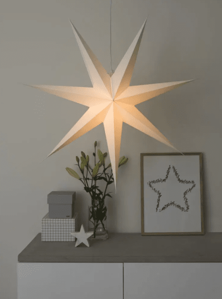 Verlicht de duisternis van december met deze klassieke papieren ster in een grijs/beige kleur. Met zijn stijlvolle design en zachte licht verspreidt het een rustige en huiselijke kerstsfeer. Ideaal om in het raam te hangen of tegen een mooie muur – een tijdloze decoratie die elke kamer met haar eenvoudige elegantie verfraait. Wordt geleverd met 5 m wit snoer, aan/uit-schakelaar en stekker. Lichtbron niet inbegrepen.