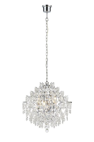 Deze prachtige kristallen kroonluchter uit de Rosendal-serie verandert uw woonkamer in een sprankelende feestzaal. De prachtige machinaal gesneden prisma's en het verchroomde metalen frame zorgen voor een exclusieve uitstraling. Inclusief 1,5 meter lange ketting en plafondpaneel voor eenvoudig ophangen. Lichtbronnen niet inbegrepen.
