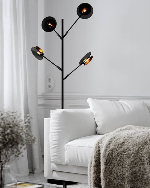 Als monotonie geen optie is. Met de Turno vloerlamp in klassiek zwart metaal heeft u de mogelijkheid om de lichtbronnen naar eigen wens aan te passen. De Turno vloerlamp heeft geen achterkant, u kunt zelf kiezen of u de lichtbronnen, die in een buis van matglas zijn ondergebracht, centraal wilt hebben of dat u ze liever verborgen en aan de achterkant wilt hebben. zodat het aan de zijkanten achter de goudkleurige metalen schijf naar buiten straalt. Door de verschillende designs van de staande lamp is Turno in de meeste ruimtes van uw huis toepasbaar. Heb je misschien al een nieuwe hallamp, woonkamerlamp of slaapkamerlamp gevonden? De Turno vloerlamp is geschikt om neer te zetten, maar kan ook prima in huis gebruikt worden. Dankzij het slanke design is hij perfect voor plaatsing in iets smallere ruimtes. Wordt geleverd met een 2,5 m lange kabel met een aan/uit-schakelaar en ingebouwde dimmer. Lichtbronnen niet inbegrepen.