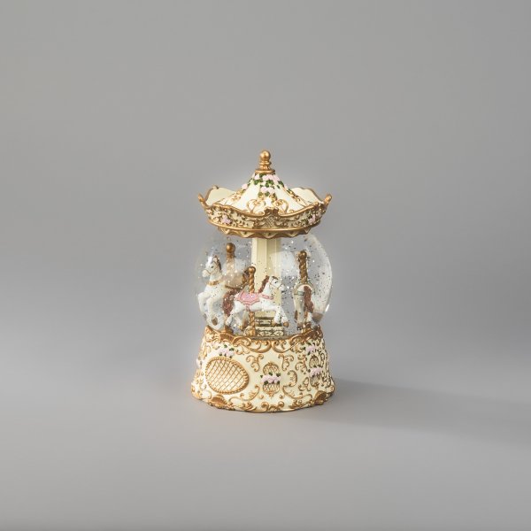 Creëer een magische en nostalgische kerstsfeer met deze met water gevulde plastic lantaarn, die een prachtige carrousel voorstelt. Wanneer de warmwitte verlichting wordt ingeschakeld, dwarrelt de glitter rond en zorgt voor een sfeervolle gloed. De lantaarn is voorzien van een timerfunctie, 5 uur aan en 19 uur uit, die zich herhaalt, voor eenvoudig en handig gebruik. Werkt op 3 AA-batterijen (niet meegeleverd) en wordt geleverd met een USB-kabel voor gebruik met een snoer (transformator niet meegeleverd).